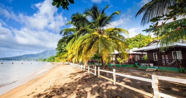 However, Dominica has a few famous tourist spots, such as the  Indian River  in  Portsmouth,  Emerald Pool, Trafalgar Falls, Scotts Head (where the Atlantic Ocean meets the Caribbean Sea), and the world’s second-largest boiling lake, which is inside Morne Trois Pitons National Park. The ocean is crystal clear and calm on the Caribbean side of the island and more violent on the Atlantic coast. This is one of the best places in the Caribbean for sport fishing and whale watching. This island country also has many excellent diving spots due to its steep drop-offs, healthy marine environment, and reefs.