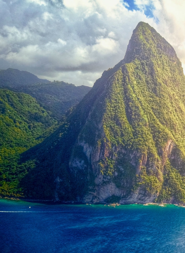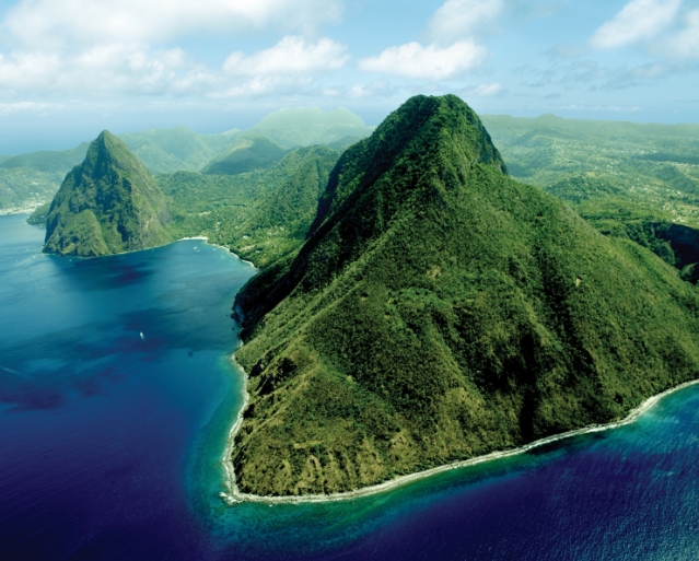Saint Lucia is famous for its exotic plants, tropical forests and gardens, sandy beaches on the West coast, natural healing mineral springs and unique underwater world, endemic animals, opportunities for fine fishing, Windsurfing, horse riding and unique descents into volcanoes. The volcanic island of Saint Lucia is more mountainous than most Caribbean islands, with the highest point being Mount Gimie, at 950 meters (3,120 feet) above sea level. An integral symbol of St. Lucia – twin peaks the Pythons, form the island’s most famous landmark.